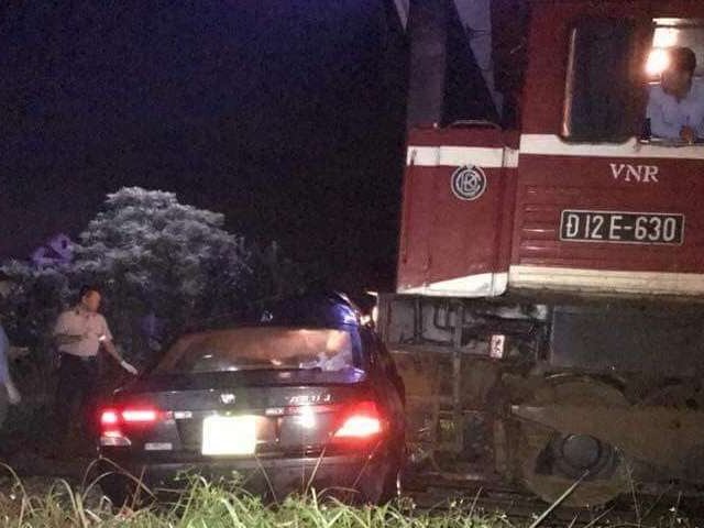 Ô tô con sang đường đúng lúc tàu hỏa đi tới, đoạn qua huyện Thanh Hà (Hải Dương), nên bị đẩy rê trên đường sắt hơn 40m.