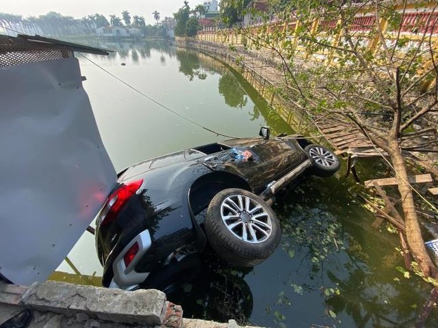 Ô tô chở 4 người lao xuống hồ ở Hà Nội