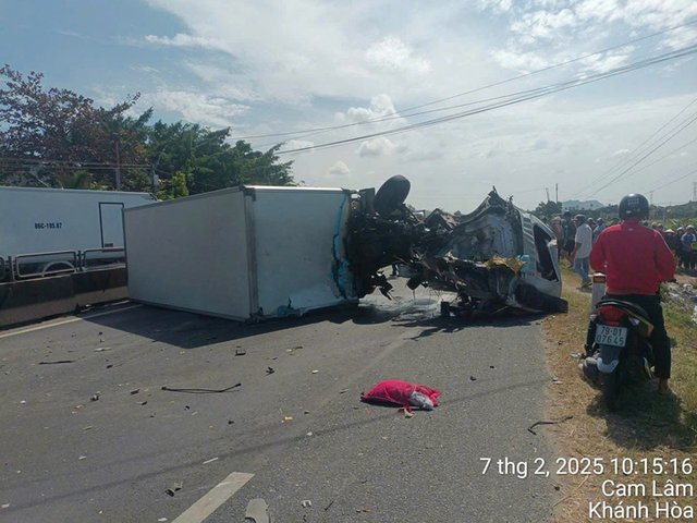 Ô tô tải tông vào dải phân cách ở Khánh Hòa, 2 người thương vong