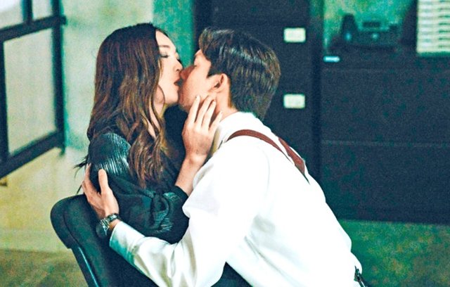 Diễn viên Hong Kong Ôn Bích Hà đóng cảnh yêu đương với Quan Trí Bân, tài tử kém cô 14 tuổi, trong "Đọa lạc hoa".