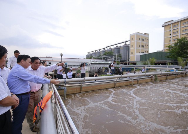 <p><strong>Để minh chứng nhà máy của mình xử lý nước thải rất tốt, ông Dũng \"lò vôi\" tự tin uống một ly nước thải sau xử lý trước mặt Bộ trưởng Bộ Tài nguyên và Môi trường (TN-MT)</strong></p>