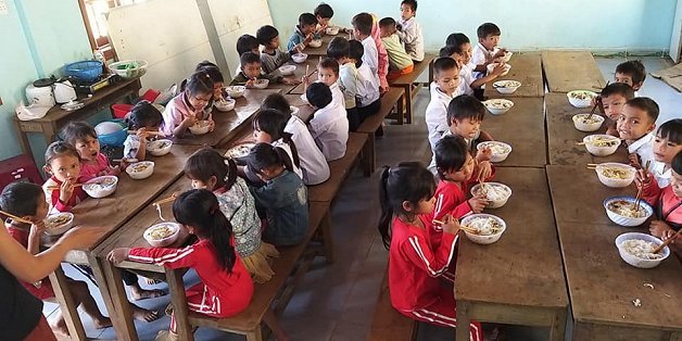 Thấy bát bún cá sau giờ học buổi sáng, đôi mắt những đứa trẻ vùng cao tại điểm trường Păk Lũ Quảng Nam hấp háy bao niềm vui.