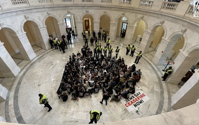 Những người ủng hộ Palestine đã tổ chức một cuộc biểu tình, xông vào toà nhà Quốc hôi Mỹ hôm 18/10, yêu cầu Mỹ ủng hộ lệnh ngừng bắn giữa Israel và Hamas.