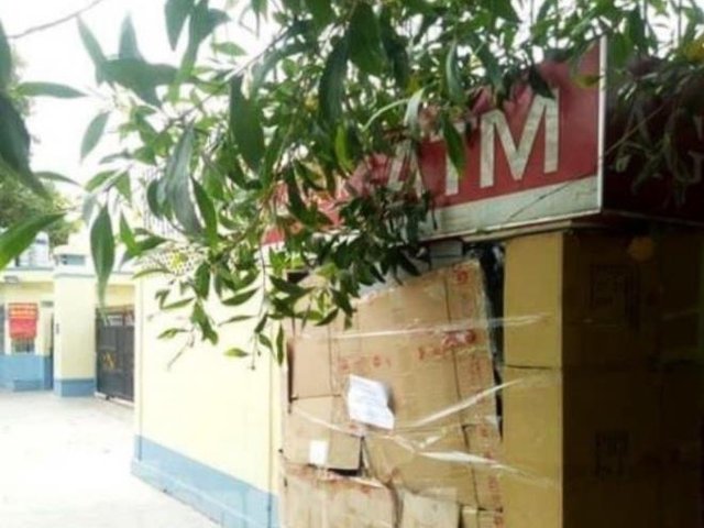 Một người đàn ông bịt mặt dùng máy cắt sắt phá cây ATM của ngân hàng Agribank ở Bình Dương để trộm tiền.