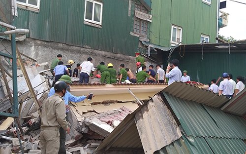 Nhà hai tầng đổ sập khi phá dỡ, hai người mắc kẹt