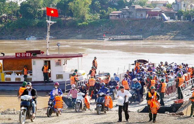 Tạm dừng lưu thông qua phà để chuẩn bị lắp lại cầu phao Phong Châu