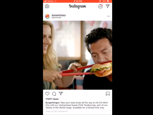 Burger King phải xin lỗi và gỡ bỏ quảng cáo được cho là chế giễu văn hoá ẩm thực Việt Nam khi xuất hiện những người phương Tây vật lộn ăn bánh kẹp bằng đũa.