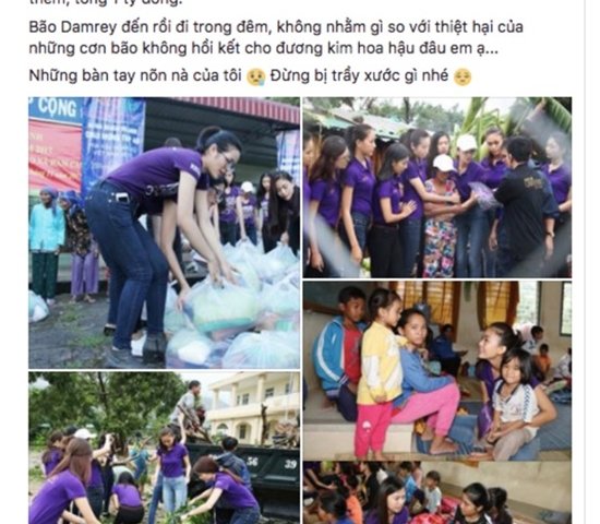 Á hậu Hoàng My phát ngôn sốc, gây phẫn nộ dư luận khi nói bão Damrey không nhằm gì so với thiệt hại của đương kim hoa hậu