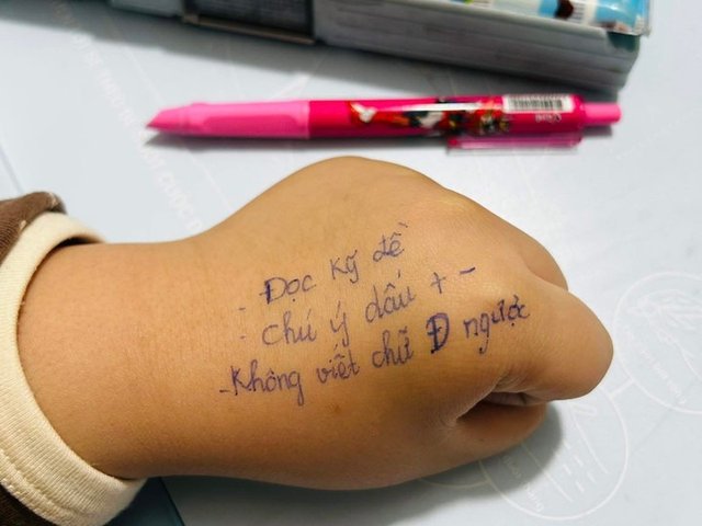 Lo con đi thi hay nhầm, mẹ viết 'phao' lên tay con khiến dân mạng thích thú
