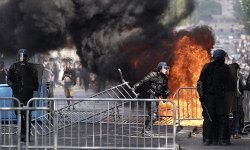 Cảnh sát Pháp đụng độ người biểu tình sau lễ duyệt binh ngày quốc khánh