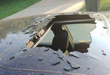 Chai dầu gội để trong xe dưới thời tiết 32 độ C đã phát nổ khiến cửa sổ trời vỡ toác.