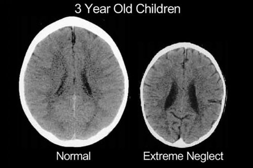 <strong>Ảnh chụp não của hai trẻ cùng tuổi cho thấy cảm xúc tiêu cực khiến não bộ bị teo nhỏ.</strong><br />
