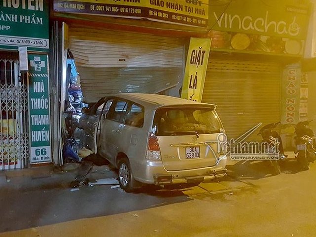 Chiếc ô tô 7 chỗ cố tình đâm vào cửa một ngôi nhà trên phố Mai Dịch khiến cả khu phố náo loạn.