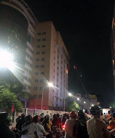 Người dân trên đường Phổ Quang, quận Tân Bình, hoảng hốt khi thấy lửa bốc ra ngùn ngụt tại tầng 9 toà nhà Waseco Building.