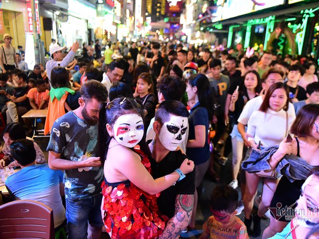 Người dân Sài Gòn trong màu áo sặc sỡ, kinh dị hoá trang thành ma, quỷ tham gia lễ hội Halloween khu phố Tây Bùi Viện vào tối 30/10