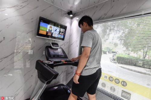 Người dùng sử dụng điện thoại di động để thanh toán cho các chi phí sử dụng phòng tập theo giờ.