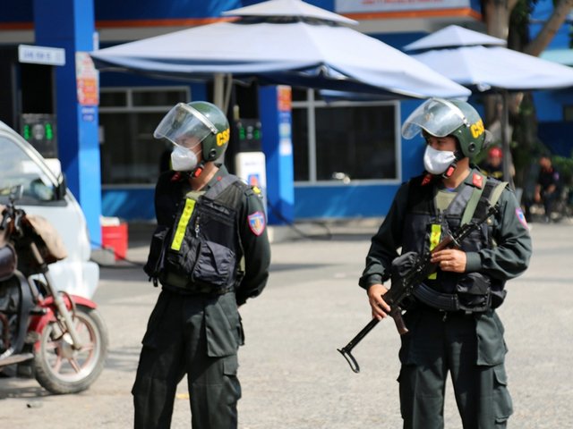 Cảnh sát vũ trang phong toả cây xăng ở Sài Gòn