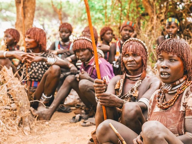 Các chàng trai Hamar tham gia vào tập tục khỏa thân nhảy qua lưng bò hàng năm để chứng minh sự trưởng thành trong khi các cô gái chấp nhận bị quất roi để thể hiện tình yêu.