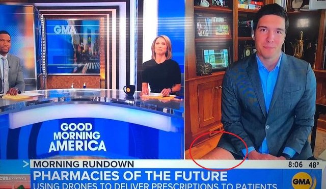 Hình ảnh phóng viên Will Reeve không mặc quần dài lên sóng truyền hình đã được khán giả chụp hình lại và chia sẻ rộng rãi trên mạng xã hội.