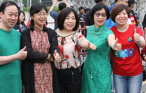 Các bà mẹ mặc xường xám vì từ này phát âm giống "thành công", ông bố mặc gile vì chữ cái đầu trùng với cụm "mã đáo thành công".