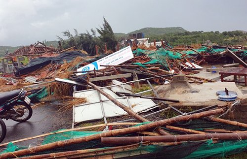 Trận lốc xoáy xuất hiện ở khu du lịch Gành Đá Đĩa làm khoảng 40 căn nhà cùng một số ôtô hư hỏng, 23 người bị thương.