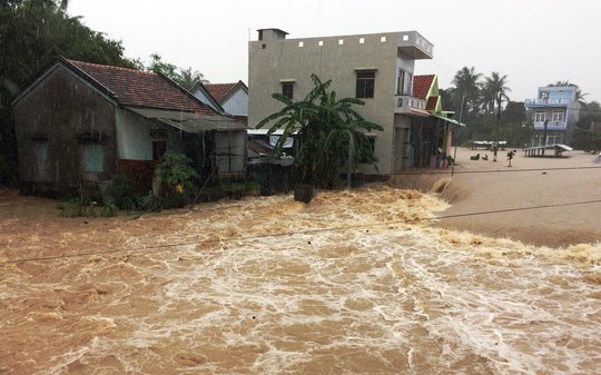 Mưa to do ảnh hưởng bão Usagi khiến nước lũ ở Phú Yên, Khánh Hòa, Ninh Thuận lên nhanh, nhiều nhà dân, trạm y tế, trường học ngập nước.