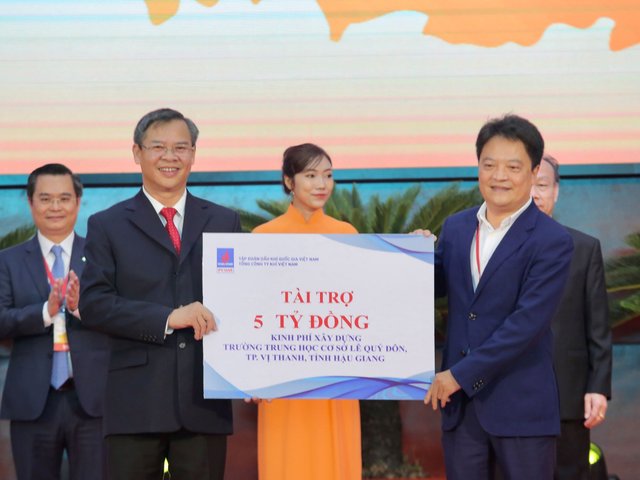 Ngày 16/7, trong khuôn khổ chương trình Hội nghị Xúc tiến đầu tư tỉnh Hậu Giang, lãnh đạo Tập đoàn Dầu khí Việt Nam (Petrovietnam) và PV GAS đã trao hỗ trợ kinh phí xây dựng các điểm trường mới trên địa bàn tỉnh.