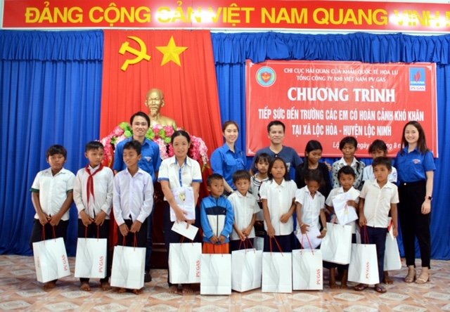 Trong 02 ngày 24 và 25/08/2019, Đoàn Thanh niên Tổng công ty Khí Việt Nam phối hợp cùng Đoàn Thanh niên Chi cục Hải quan Cửa khẩu Quốc tế Hoa Lư – tỉnh Bình Phước đã tổ chức chương trình “Tiếp sức đến trường năm 2019” cho các em học sinh có hoàn cảnh khó khăn tại Trường Tiểu học và Trung học cơ sở Lộc Hòa, huyện Lộc Ninh, tỉnh Bình Phước.