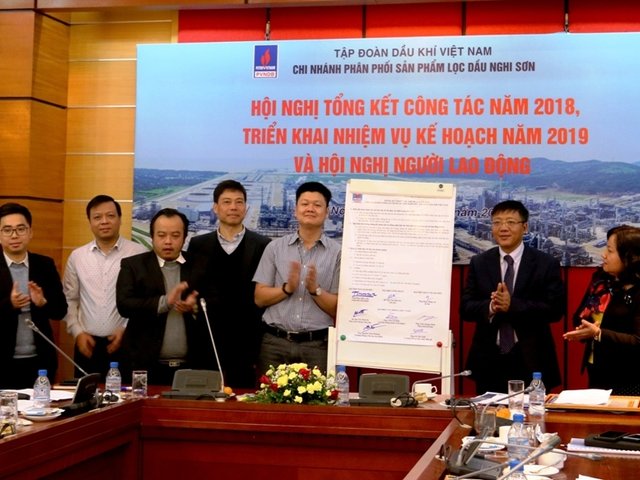 <b>Ngày 7/1, Chi nhánh Phân phối sản phẩm lọc dầu Nghi Sơn - Tập đoàn Dầu khí Việt Nam (PVNDB) đã tổ chức thành công Hội nghị tổng kết công tác năm 2018, triển khai nhiệm vụ kế hoạch 2019 và Hội nghị Người lao động.</b>