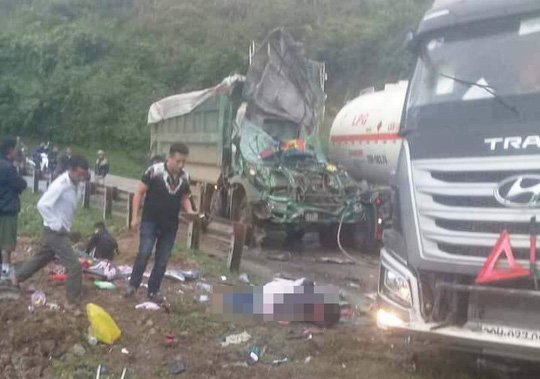 Đang lưu thông trên QL6 qua tỉnh Hòa Bình, chiếc xe bồn mất phanh lao về phía trước và tông nát đầu xe ben chở cát khiến 2 người bị thương nặng, QL6 bị tắc nghẽn hàng km.