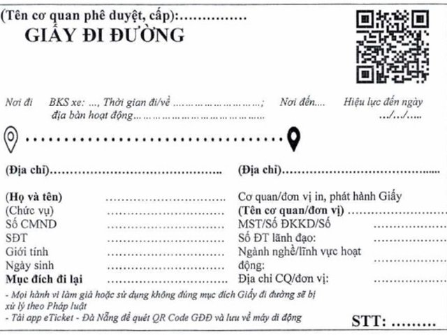 Theo Quyết định 2905, từ 8h ngày 5/9, Đà Nẵng áp dụng mẫu giấy đi đường QRCode mới.