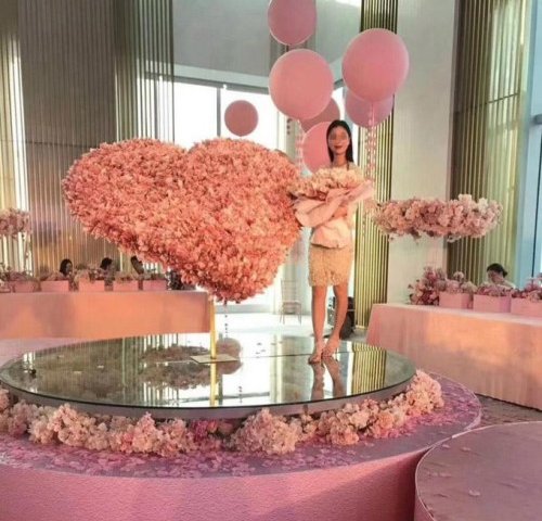Nam thanh niên cho biết để hoàn thành món quà tặng bạn gái, anh đã phải thuê 7 nhân viên dùng 334.400 tệ để cắt ghép thành hình trái tim lớn cho bữa tiệc sinh nhật.