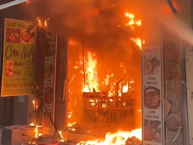Quán cơm ở Hà Nội cháy ngùn ngụt sau tiếng nổ