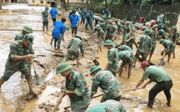 Sáng 12-10, tại nhiều địa phương của tỉnh Thái Nguyên, cán bộ, chiến sĩ các đơn vị thuộc Quân khu 1 tiếp tục tăng cường giúp dân dọn dẹp môi trường sau khi lũ rút, cùng bà con sớm ổn định cuộc sống sau thiên tai.