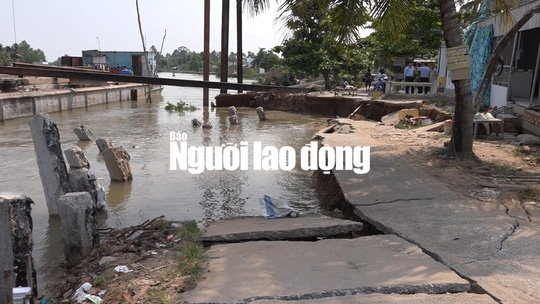(NLĐO) – Vị trí đoạn sạt lở nằm trong giai đoạn 3 của dự án bờ kè chống sạt lở sông được khởi công khoảng 8-2017, hiện đã hoàn thành 50% khối lượng công trình.