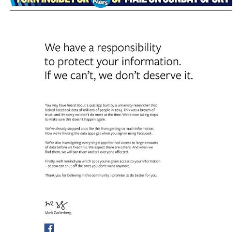 Facebook mua quảng cáo báo giấy để in lời xin lỗi