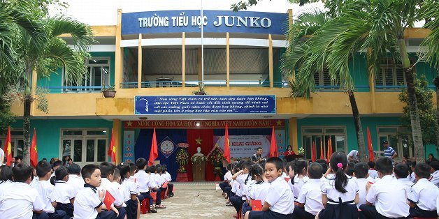 Ngoài thầy và trò, buổi lễ khai giảng ở mái trường tiểu học mang tên Junko còn có sự hiện diện đặc biệt của hàng chục sinh viên người Nhật Bản.
