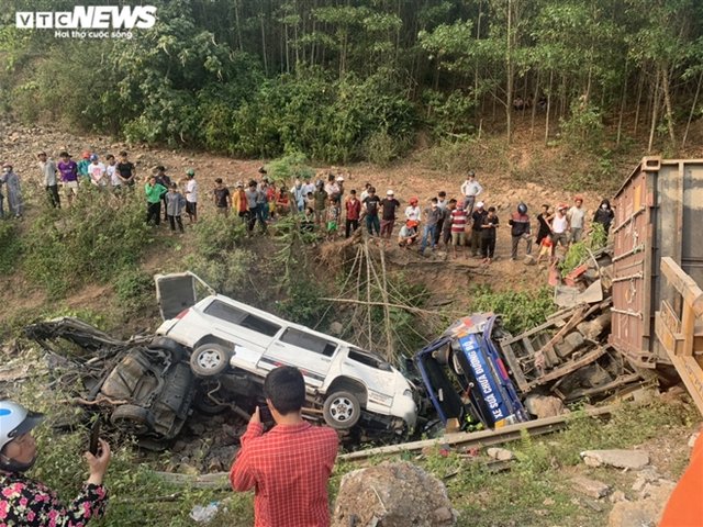 Container tông văng nhiều ô tô xuống vực: Thông tin mới nhất