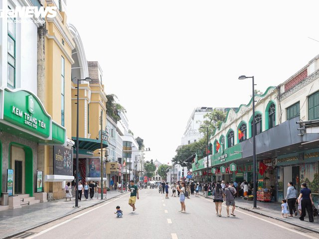 Phố đi bộ quanh Hồ Gươm (Hà Nội) ghi nhận thay đổi rõ rệt khi hàng rong gần như biến mất, vỉa hè sạch sẽ, người dân thoải mái dạo bộ, vui chơi.