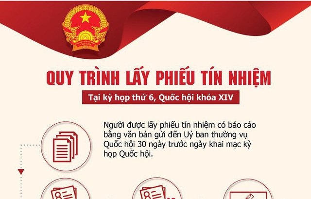 Dự kiến từ ngày 24 đến 25.10. 2018, các đại biểu sẽ lấy phiếu tín nhiệm đối với 48 đồng chí giữ chức vụ do Quốc hội bầu hoặc phê chuẩn tại kỳ họp thứ 6, Quốc hội khóa XIV.