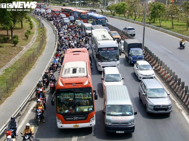 Trưa 6/2 (mùng 6 Tết), nhiều đoạn trên quốc lộ 1 đoạn qua Vĩnh Long và Tiền Giang ùn tắc do lượng người rời quê lên TP.HCM và các tỉnh lân cận tăng đột biến.