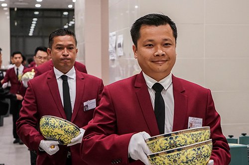 Mọi khâu kiểm định thực phẩm, chế biến món ăn, bưng bê phục vụ trong tiệc chiêu đãi lãnh đạo APEC đều được nhân viên an ninh của các nền kinh tế theo sát.