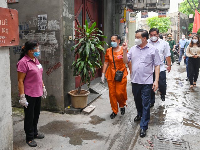 Kiểm tra công tác phòng, chống dịch COVID-19 tại quận Hoàng Mai, Bí thư Thành uỷ Hà Nội lưu ý, quận Hoàng Mai phải cảnh giác vì vẫn được coi là “vùng đỏ” về dịch COVID-19 của Hà Nội, đồng thời đề nghị quận phối hợp sớm kích hoạt hết công suất các cơ sở với khoảng 7.500 giường bệnh phục vụ công tác phòng, chống COVID-19 của TP.