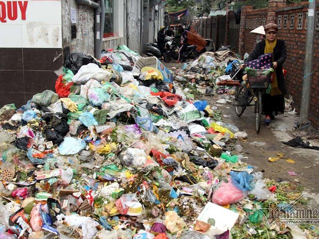Nhiều đường phố ở nội thành Hà Nội ngập trong rác vì người dân chặn đường không cho xe rác chạy vào bãi Nam Sơn.