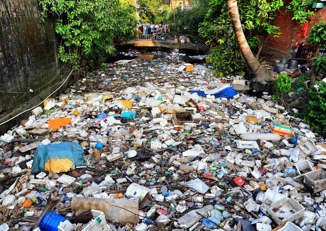 Rác thải bịt kín miệng cống thoát nước ở Sài Gòn
