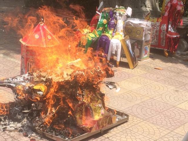 "Nếu đốt vàng mã mà người âm dùng được thì chỉ cần đốt quả địa cầu là gì cũng có", thầy Minh Quang nói và khuyên cúng áo thật, tiền thật để "thụ lộc" thay vì đốt đi.