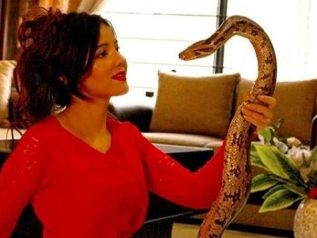 Nữ ca sĩ Rabi Pirzada quay video cùng các loài bò sát hoang dã và dọa gửi chúng tới "tấn công" Thủ tướng Ấn Độ Narendra Modi.