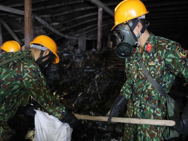Trung tâm Ứng cứu sự cố hóa chất độc phóng xạ, hạt nhân thuộc Binh chủng Hóa học (Bộ Quốc phòng) phối hợp với các đơn vị chức năng liên quan đang thu gom các vật liệu từ vụ cháy ở Công ty Rạng Đông để lấy mặt bằng, sau đó, tiến hành phun chất khử độc để làm sạch môi trường tại khu vực này.