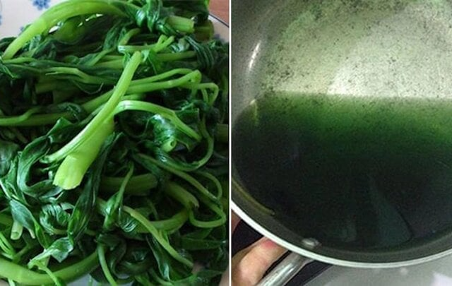Nhiều người lo sợ không dám ăn khi thấy nước rau muống luộc có màu xanh đậm, hoặc hơi ngả màu vì nghĩ trong rau tồn dư hóa chất.