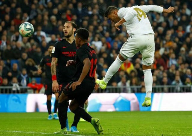 Tiền vệ Casemiro ghi cả hai bàn khi Real hạ Sevilla 2-1 ở vòng 20 La Liga hôm 18/1.